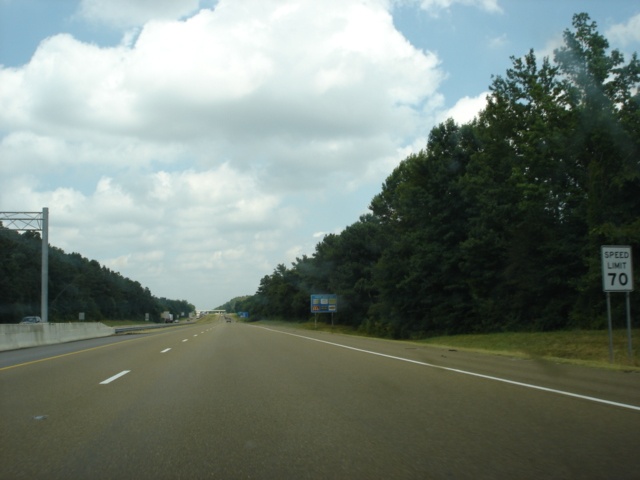 With the Memphis-area traffic behind us, the speed limit increases to 70 as the landscape becomes more rural. (Photo taken 7/5/05) |