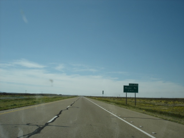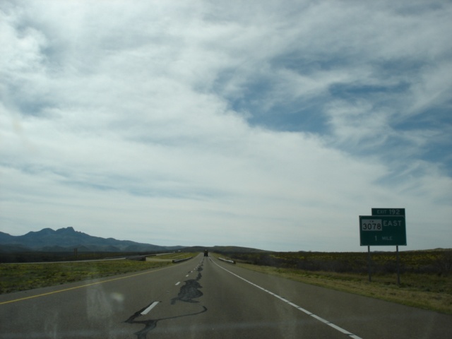 Interstate 10 West approaching Exit 192 - Farm to Market Road 3078 East - 1 mile. Use FM 3078 to go back to Balmorhea. (Photo taken 3/17/05) |