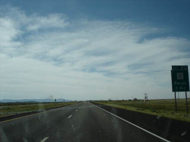 Use Interstate 20 East to go to Pecos. (Photo taken 3/17/05) |