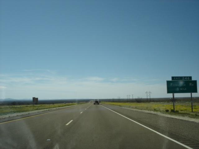 Interstate 10 West approaching Exit 246 - Firestone Road - 1 mile. (Photo taken 3/17/05) |