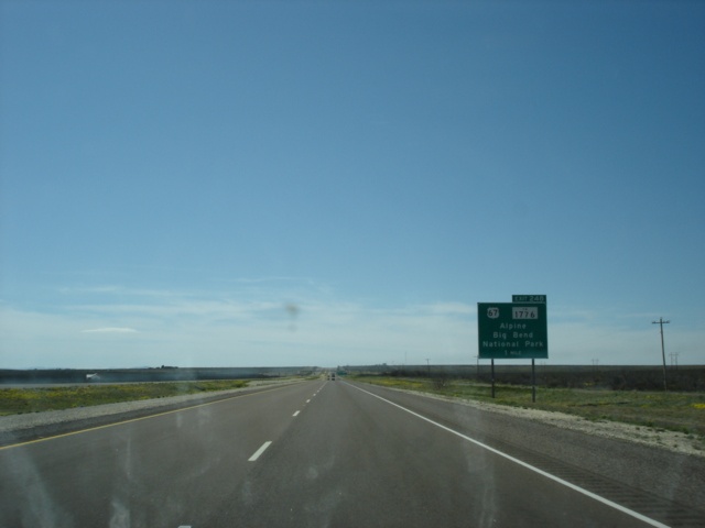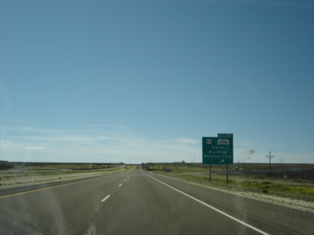Interstate 10 West and U.S. 67 South at Exit 248 - U.S. 67/Farm to Market Road 1776 - Alpine/Big Bend National Park. Use U.S. 67 South, U.S. 90 East, and U.S. 385 South to get to Big Bend National Park, a 109 mile drive from here. (Photo taken 3/17/05) |
