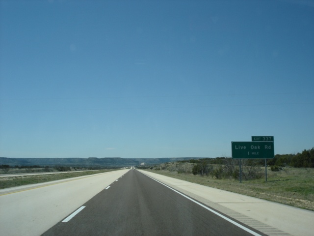 Interstate 10 West at Exit 484 - Midway Road. This is located about halfway between Junction and Kerrville. (Photo taken 3/17/05) |