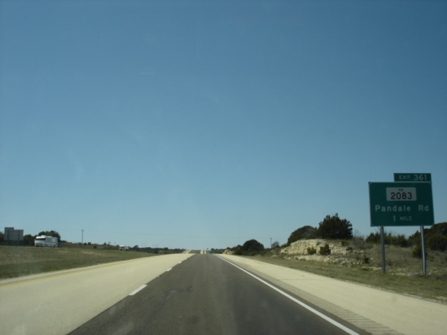 Interstate 10 West at Exit 361 - Ranch to Market Road 2083. Use the RM road as another way of getting to U.S. 90. (Photo taken 3/17/05) |