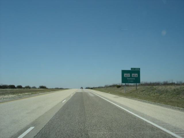 Interstate 10 West at Exit 404 - Loop 467/Ranch to Market Road 864 - Sonora. (Photo taken 3/17/05) |