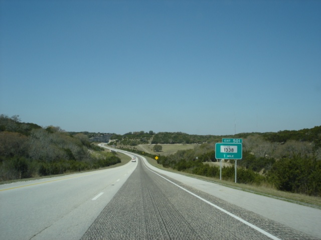 Interstate 10 West at Exit 501 - Farm to Market Road 1338. (Photo taken 3/17/05) |
