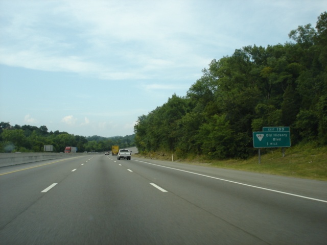 Interstate 40 East approaching Exit 199 - Tennessee Secondary 251 - 1 mile. Old Hickory Boulevard runs north-south through west Nashville. (Photo taken 7/5/05) |