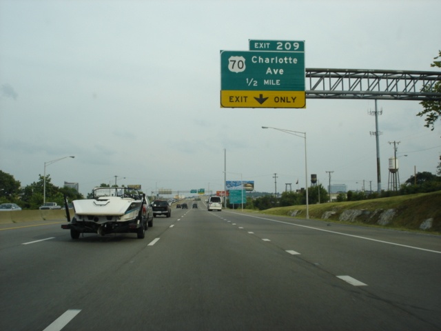 Interstate 40 East and Interstate 65 South approaching Exit 209 - U.S. 70/Charlotte Avenue - 1/4 mile. (Photo taken 7/5/05) |