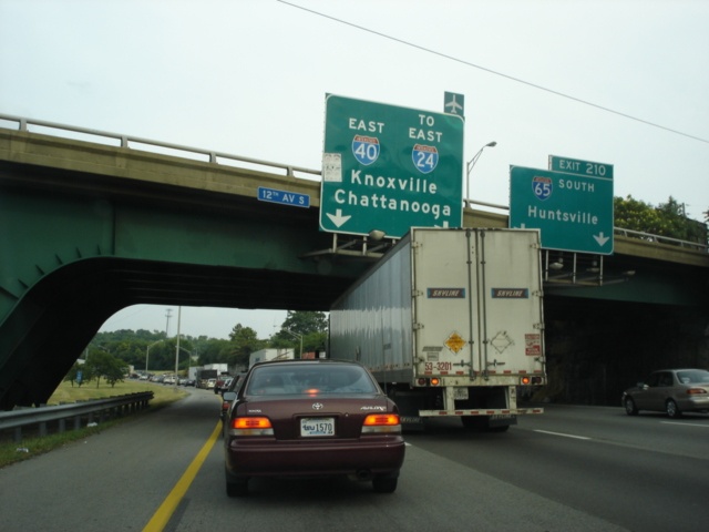 Interstate 40 East at Exit 210C - U.S. 31A and U.S. 41A South - 4th Avenue/2nd Avenue. (Photo taken 7/5/05) |