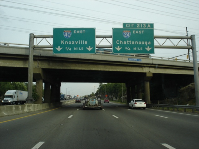 Interstate 24 and Interstate 40 East approaching Exit 213A - Interstate 24 East - 1/4 mile. (Photo taken 7/5/05) |