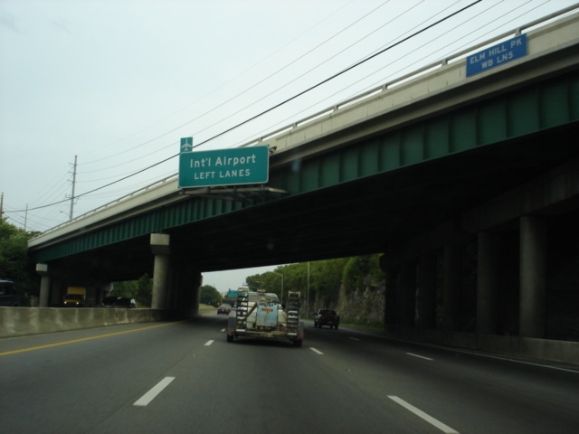 Motorists are advised to stay in the left lanes, which will be the continuation of Interstate 40 East, to the Nashville International Airport. (Photo taken 7/5/05) |