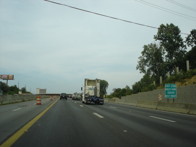 The construction zone ends as we reach Exit 216C for Tennessee Secondary 255/Donelson Pike northbound. (Photo taken 7/5/05) |