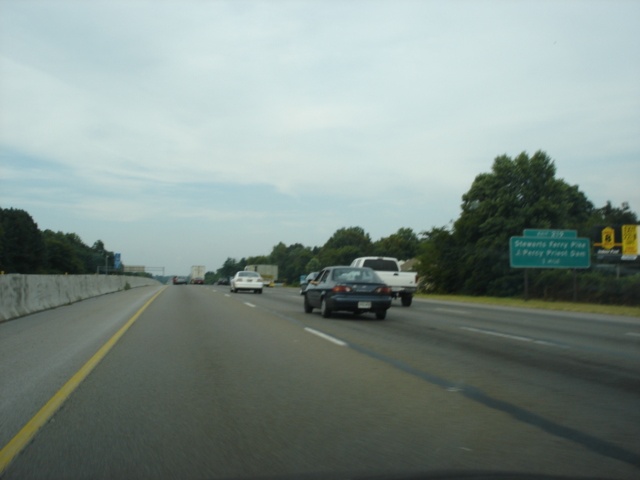 Interstate 40 East approaching Exit 219 - Stewarts Ferry Pike/J Percy Priest Dam - 1 mile. The arterial connects U.S. 70 to the west with Pleasant Hill Road to the east. (Photo taken 7/5/05) |