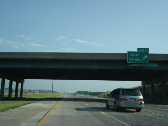 Interstate 435 North at Exit 2 - 95th Street. (Photo taken 5/22/05) |