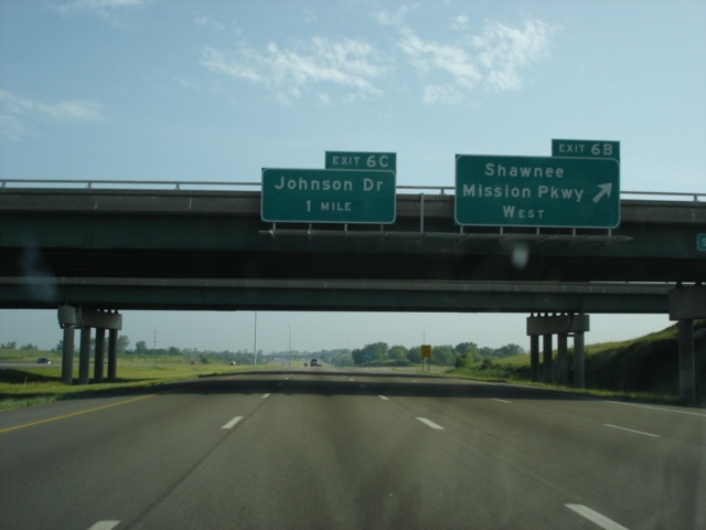 Interstate 435 North at Exit 6C - Johnson Drive. The arterial is a major east-west thoroughfare through northern Johnson County. (Photo taken 5/22/05) |