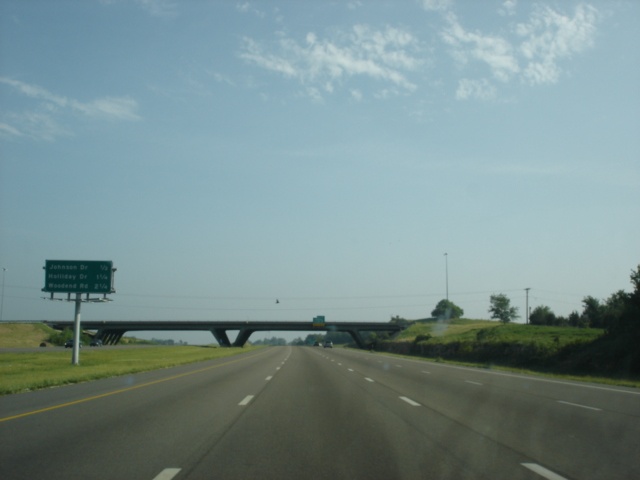 next three exits on Interstate 435 North are Johnson Drive (Exit 6C) in 1/2 mile, Holliday Drive (Exit 8A) in 1 1/4 mile, and Woodend Road (Exit 8B) in 2 1/4 miles. (Photo taken 5/22/05) |