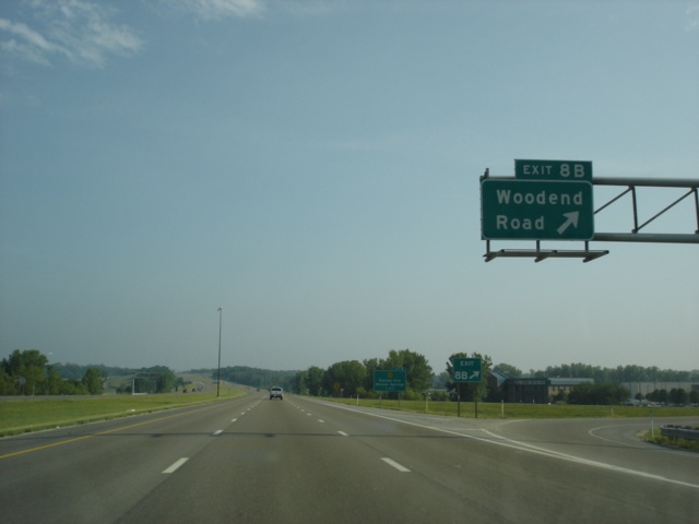 Interstate 435 North approaching Exit 8B - Woodend Road - 1 mile. (Photo taken 5/22/05) |
