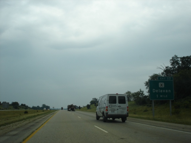 Interstate 43 North at Exit 17 - Walworth County X - Delavan. This is the first of two exits to serve the city of Delavan, population 7,956. (Photo taken 7/12/05) |