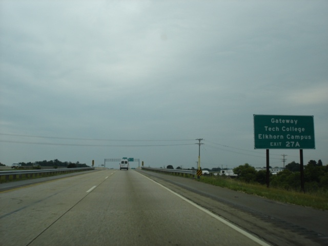Also use Exit 27A to the Elkhorn campus of Gateway Technical College. Interstate 43 crosses over Walworth County NN just ahead. (Photo taken 7/12/05) |
