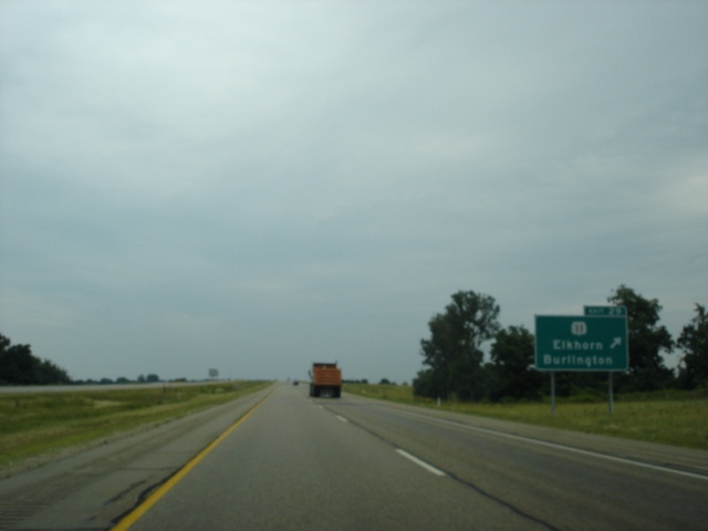 Interstate 43 North at Exit 29 - Wisconsin 11 - Elkhorn/Burlington. A bypass of Burlington is scheduled to be built within the next five years. (Photo taken 7/12/05) |