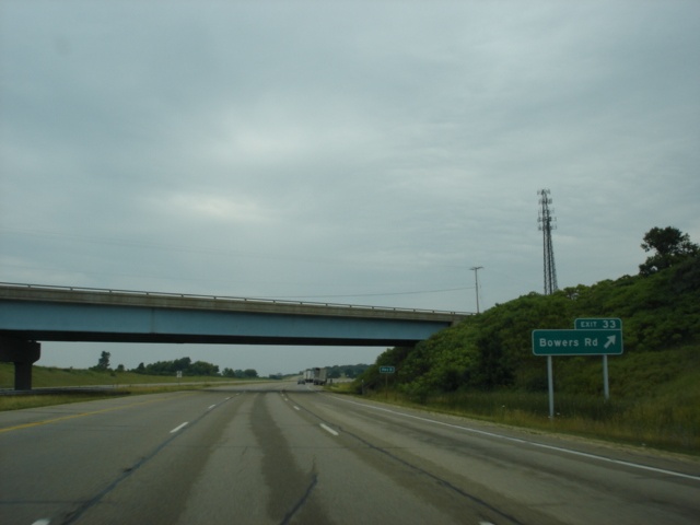 Interstate 43 North at Exit 33 - Bowers Road. (Photo taken 7/12/05) |