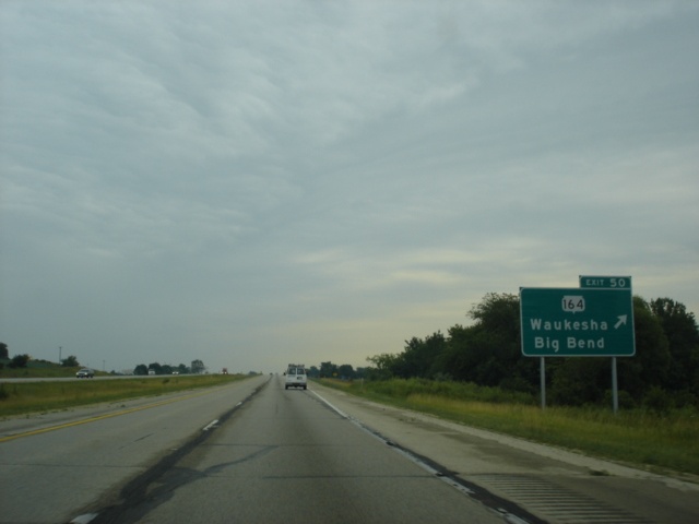 Interstate 43 North at Exit 50 - Wisconsin 164 - Waukesha/Big Bend. (Photo taken 7/12/05) |