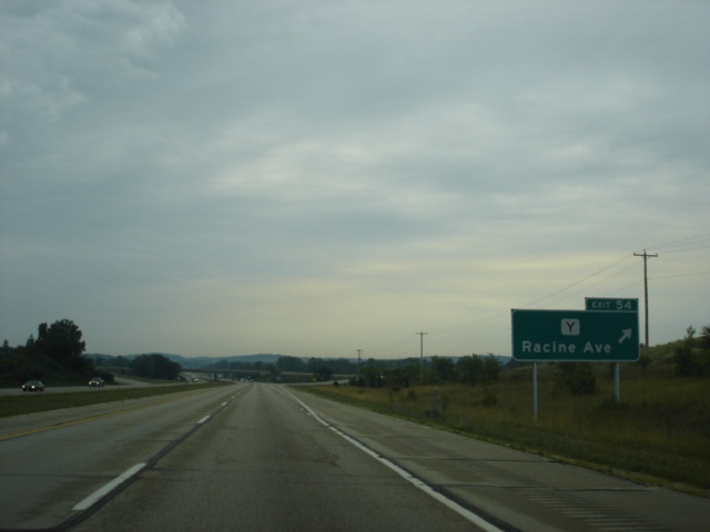Interstate 43 North at Exit 54 - Waukesha County Y/Racine Avenue. (Photo taken 7/12/05) |