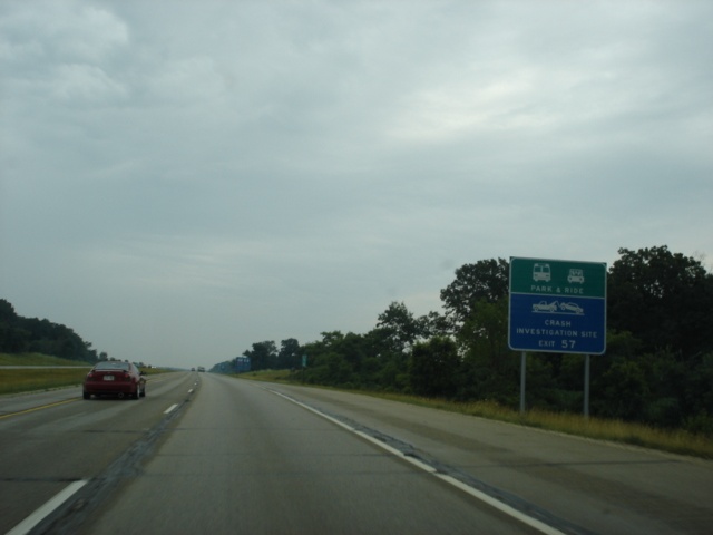 A Park & Ride lot and crash investigation site are both near Exit 57. (Photo taken 7/12/05) |