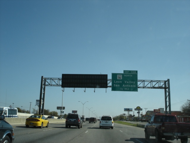 Interstate 410 East and Texas 16 North approaching Exit 13A - Texas 16 North/Spur 421 East - 1/4 mile. (Photo taken 3/17/05) |