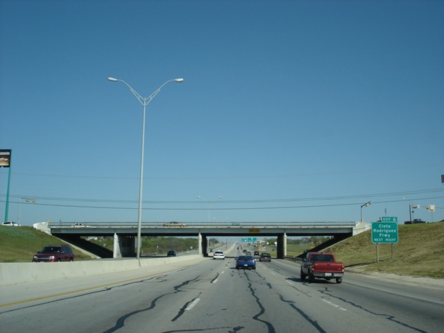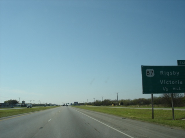 Interstate 410 South at Exit 35 - U.S. 87/Rigsby Avenue. Victoria is 105 miles to the southeast and is home for 60,603 people. (Photo taken 3/17/05) |