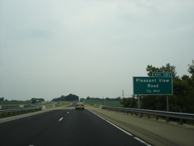 Interstate 74 West and U.S. 421 North approaching Exit 101 - Pleasant View Road - 1/2 mile. (Photo taken 7/11/05) |