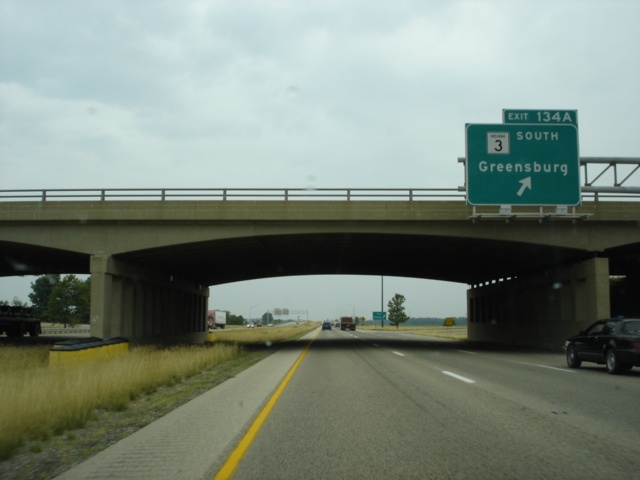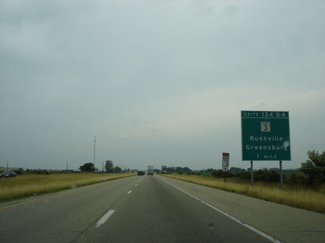 Interstate 74 West at Exit 134A - Indiana 3 South - Greensburg. (Photo taken 7/11/05) |