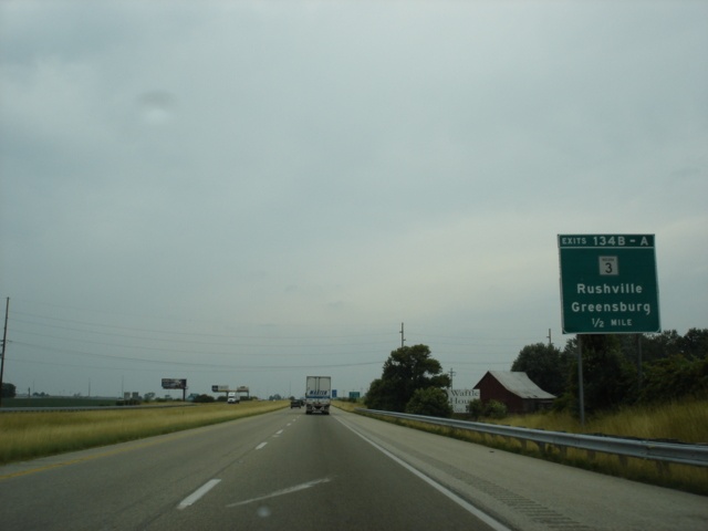 Interstate 74 West at Exit 134B - Indiana 3 North - Rushville. (Photo taken 7/11/05) |